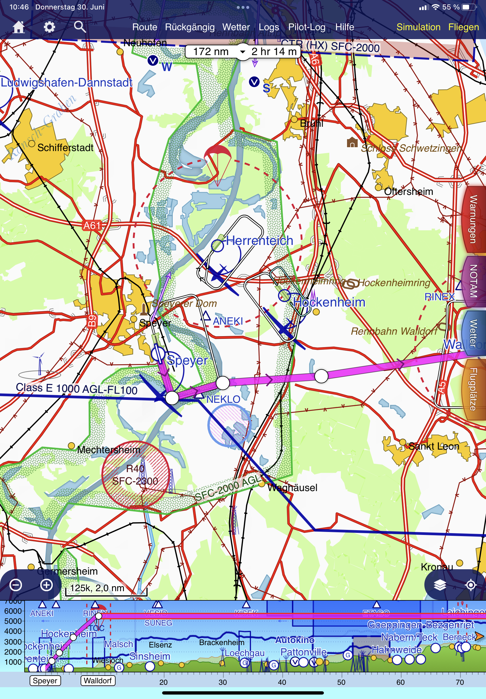 - MovingMap während des Fluges inkl. Luftraum- und Hinderniswarnung