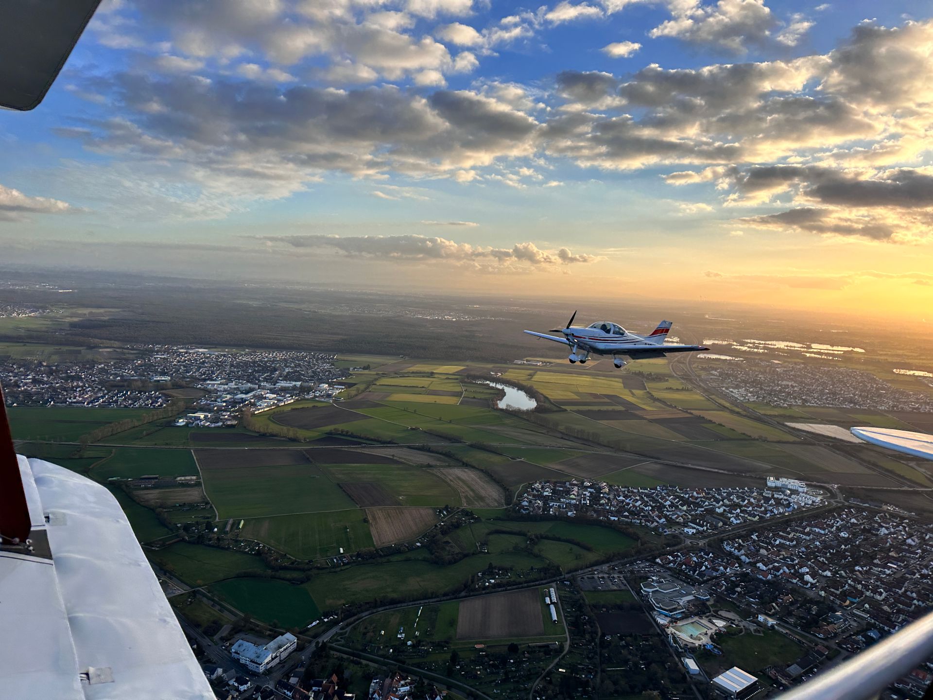 Möchtest du in einer Gruppe einen Rundflugtag erleben, dann bieten wir dir zwei Optionen an: Entweder ihr fliegt mit einem Flugzeug nacheinander oder wir stellen mehrere Flugzeuge bereit. In diesem Fall heben wir mit dir jeweils in kurzen Abständen ab. Du bist also mit mehreren Personen gleichzeitig in der Luft und kannst dir so über den Wolken auch gegenseitig von Cockpit zu Cockpit zuwinken und fotografieren. Besonders als